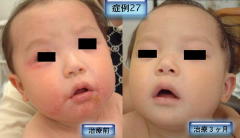 症例1は、5歳の女児。初診時重症度は中等症。全身に皮疹が見られましたが、順調に改善し、治療2ヶ月後には右の写真のようにかなりきれいになりました。