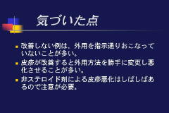 まず、時々改善しない例があるのですが、そういう例は指示通りに外用をおこなっていないことがしばしばでした。